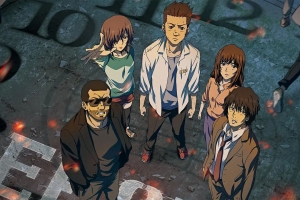 一名戴着墨镜的男子看着在地上爬着寻找东西的亡魂