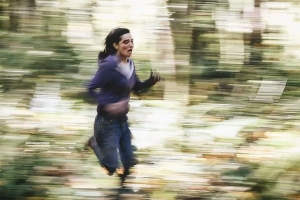 紧接着黑色车辆突然加速紧贴在劳拉身后